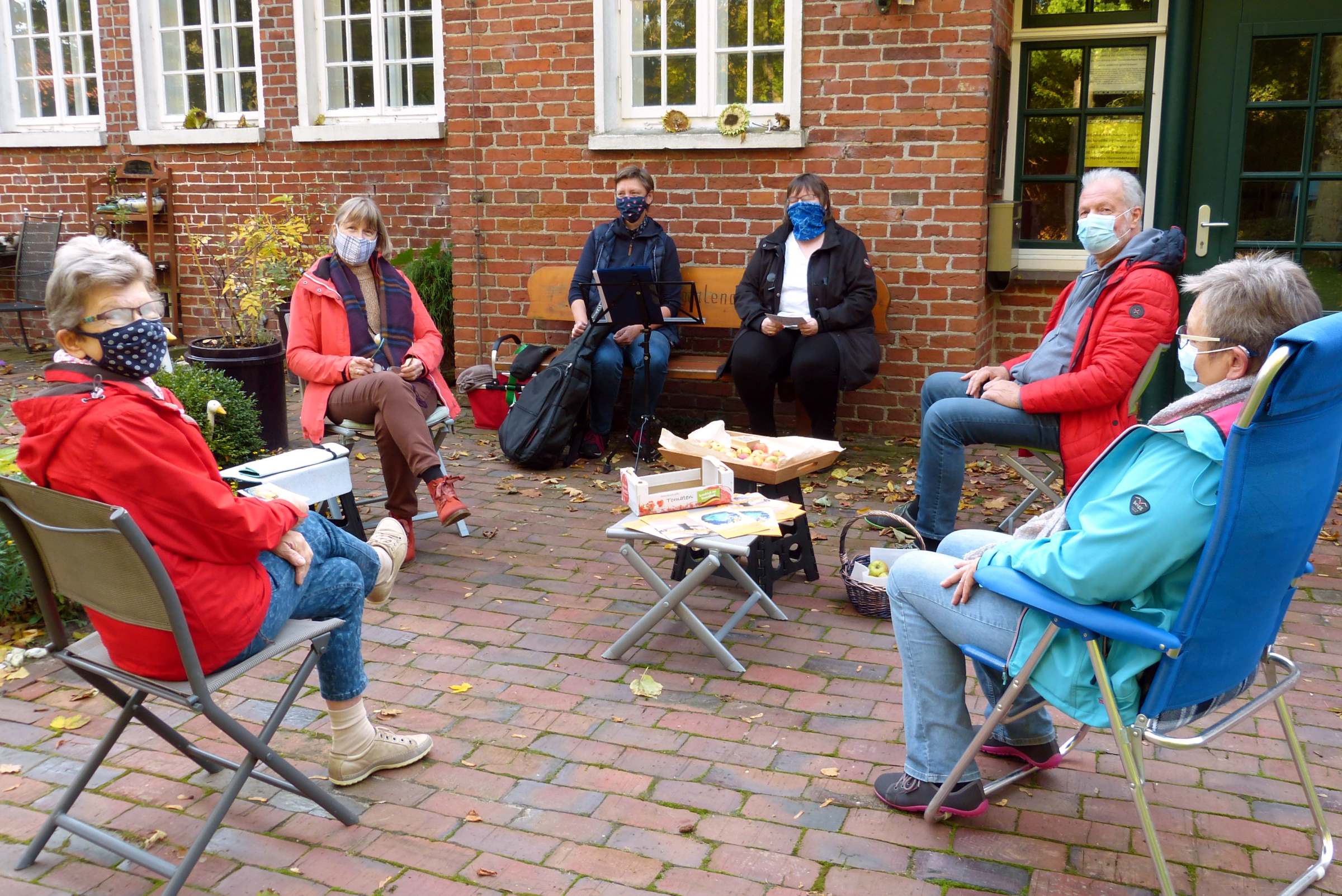 Eine konstante Gesprächs- und Erzählrunde ergab sich beim dritten Treffpunkt vor der Maria-Magdalena-Kirche Hatshausen. Dort wurde über die Kirchengemeinden früher und heute und über persönliche Erfahrungen gesprochen. Renate Dojen, Leiterin des Gitarrenchors Hatshausen, sorgte in den Erzählpausen für Musik und ließ die Anwesenden in manche Lieder mit einstimmen. Als stärkende Erinnerung erhielten die Teilnehmer aller Treffen jeweils eine Spruchkarte und einen Apfel.