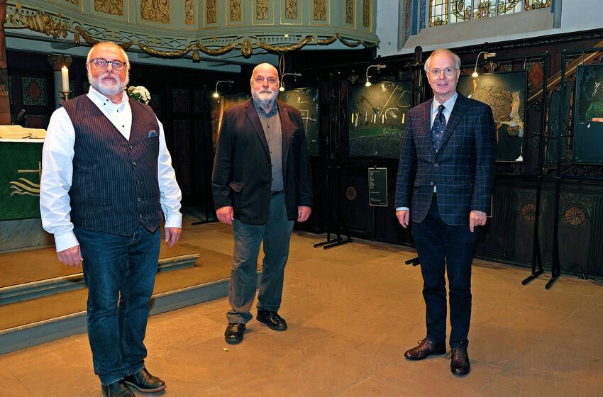 Regionalbischof Dr. Detlef Klahr und der Künstler Uwe Appold eröffneten die Ausstellung „…noch bist du da“ in der Lutherkirche in Leer. Von dem 20-teiligen Bilderzyklus sind zwölf Gemälde mit den ...